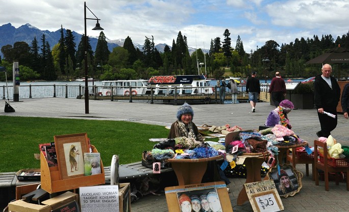 售卖羊毛帽子的妇人,看样子似东欧人。当我举起相机拍照时她向我展示了友好的微笑。这个微笑令我不得不顺带帮她做个广告:原产新西兰纯羊毛手工帽子,每顶$25纽币,是你新西兰之旅送礼的最佳手信!哈哈。