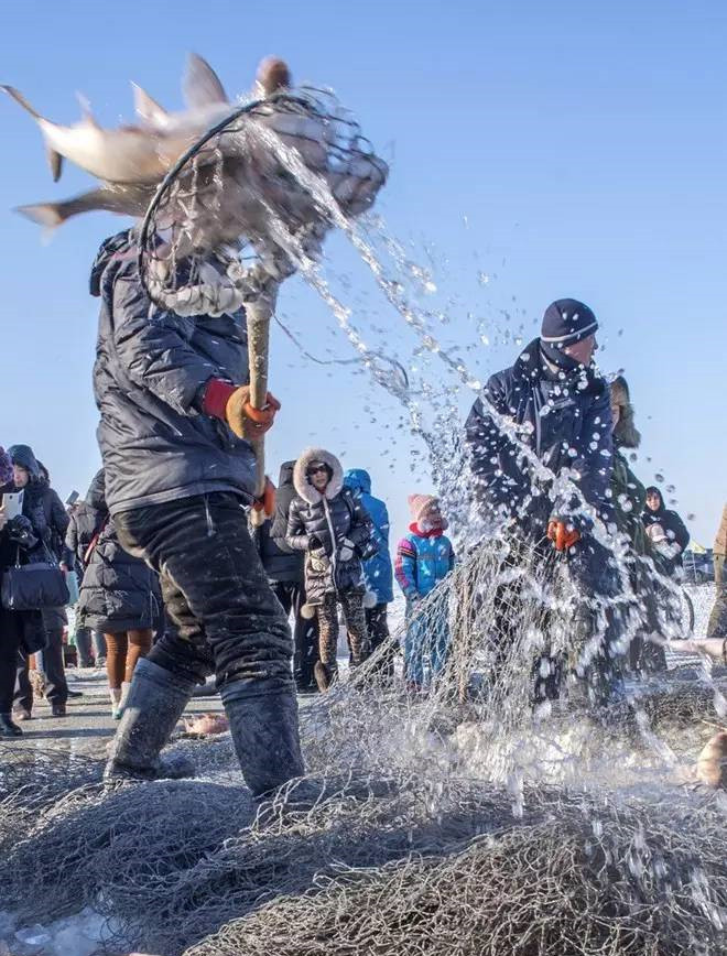 查干湖位于吉林省松原市,是我国十大淡水湖之一。查干湖冬捕始于辽金时期,是我国目前唯一保留的蒙古族最原始的捕鱼方式,以人工凿冰、布网,马拉绞盘等方式操作,查干湖冬捕奇观已被列入吉林省省级非物质文化遗产名录。每年当地都会举办渔猎文化节,吸引数以万计的游客前来观冬捕、品鱼。