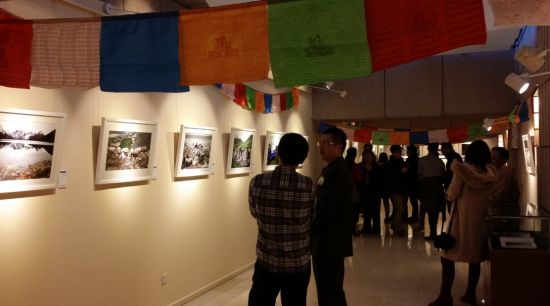这是一场别具一格的摄影展览,具有藏族风情的风马旗布满展场,来自三江源生态环境保护协会的藏族工作人员为参观展览的参观者进行讲解。整个摄影展览分为三江源地区的风景、人文、水、生态环境问题、植物、动物等板块。三江源生态环境保护协会的秘书长扎西多杰老师曾经是可可西里传奇英雄索南达杰的秘书,他们一同出生入死保护藏羚羊。扎多老师在三江源地区从事了20年的环境保护工作,对于此次展览扎多老师认为是一次非常难得的展示机会,通过展览建立了三江源地区和外界的沟通窗口,希望以后可以定期在全国各地举办三江源公益展览。