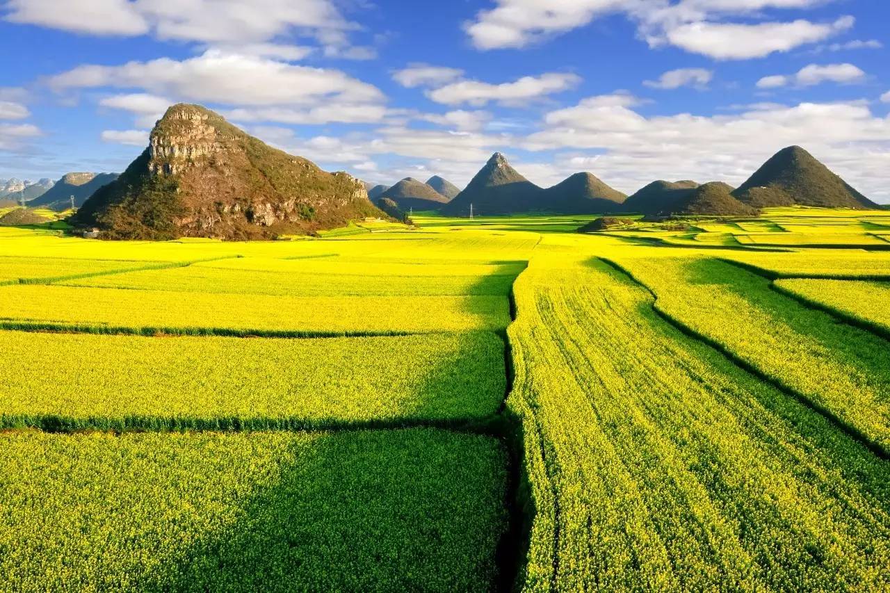 每年的二到三月份,连片的黄灿灿二十万亩油菜花便在罗平竞相怒放。车行田间,油菜花从无到有,再到满眼金黄,其美丽与大气,只有身临其境你才能深刻体会