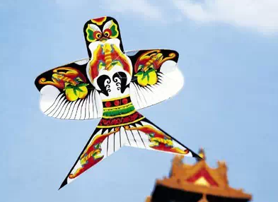 有着两千多年历史的风筝,一直融入在中国传统文化之中,受其熏陶,在传统的中国风筝中,随处可见这种吉祥寓意之处:“福寿双全”、“龙凤 呈祥”、“百蝶闹春”、“鲤鱼跳龙门”、“麻姑献寿”、“百鸟朝凤”、“连年有鱼”、“四季平安”等这些风筝无一不表现着人们对美好生活的向往和憧憬。