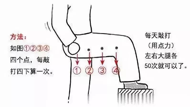 每天早上起来,双手沿着裤线位置来回敲,大概敲10分钟,最好微微发热。