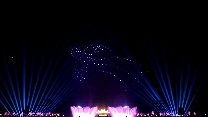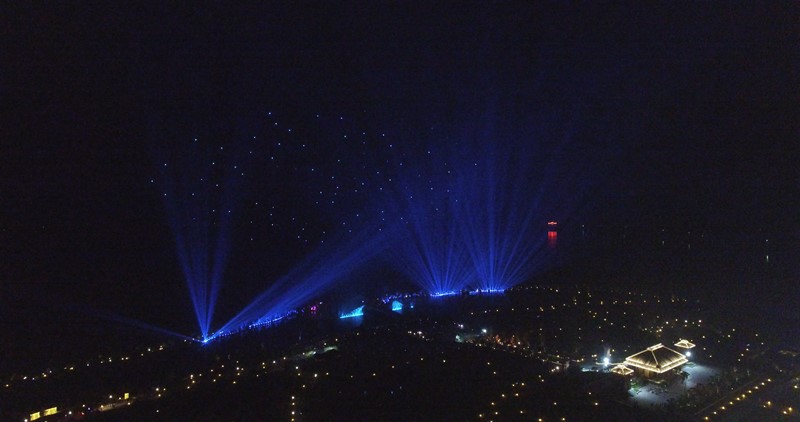 7月22日,第三届山东文化惠民消费季启动仪式的前夜,在尼山圣境泮水湖畔,数百架无人机演绎出凤舞尼山、孔子圣迹图等诸多震撼画面,与光影水幕的声光电一起点亮了圣地尼山的夜空。