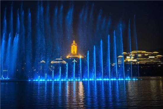 作为文化夜游的最大亮点之一,光影水幕依托科技艺术,以天为幕,将音乐、喷泉、激光、水雾等完美融合,炫美呈现出音乐与喷泉交响、激光投影与烟花表演共舞的奇幻情境、立体景观,让游客在音乐美、色彩美、画面美、艺术美中领略夜色尼山不一样的视听,在裸眼3D交互投影中,感受传统文化穿越时空的不朽魅力。